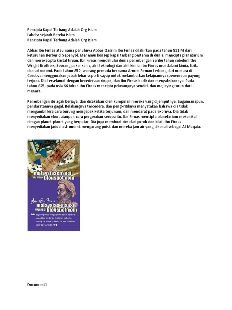 Nurkilan Sagong Nyior Tahukah Anda Siapa Tokoh Islam Yang Merekacipta Kapal Terbang Pertama Di Dunia