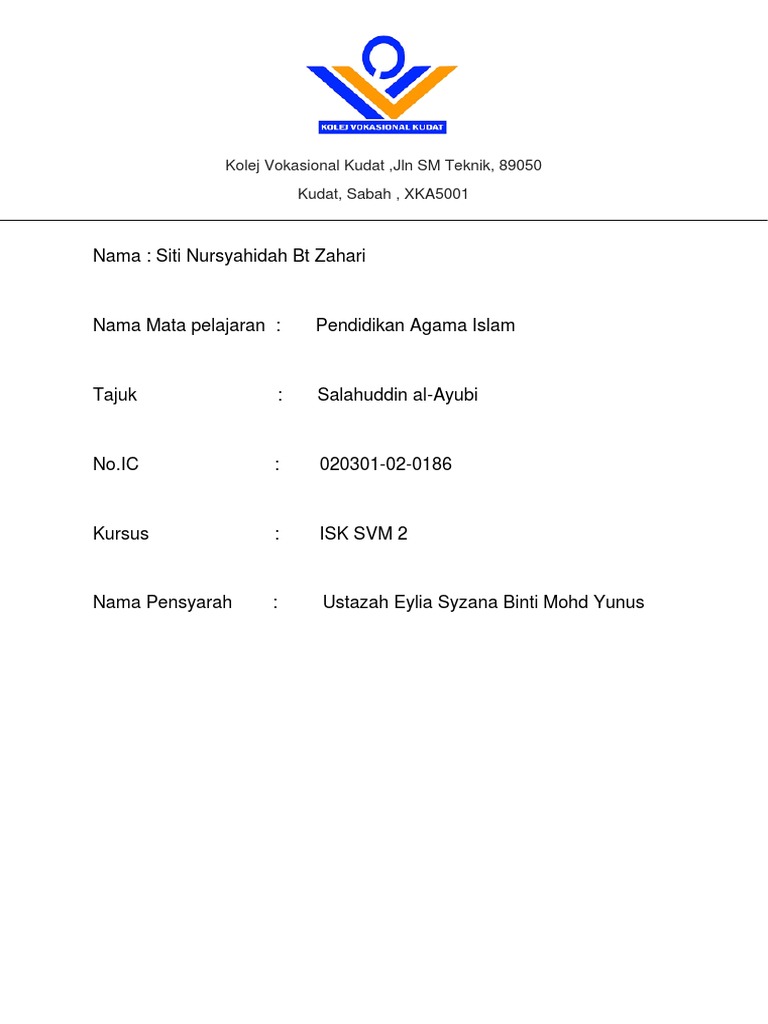 Ammmarrrr Docx Nama Kolej Kolej Vokasional Pasir Mas Kod Subjek Tajuk Salahuddin Al Ayubi Nama Iyad Ammar Bin Mohd Alui No Kad Pengenalan 021118030989 Course Hero