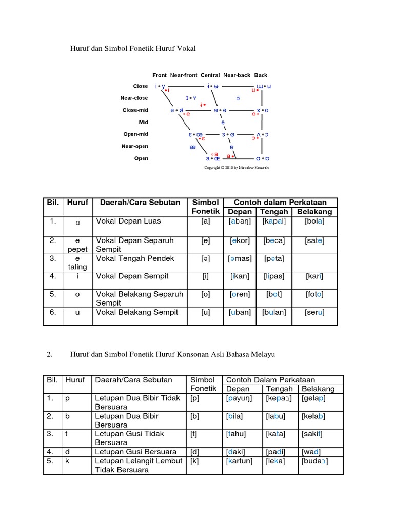 Huruf Dan Simbol Fonetik Huruf Vokal Docx Document