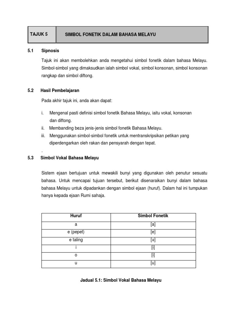 Tajuk 5 Simbol Fonetik Dalam Bahasa Melayu