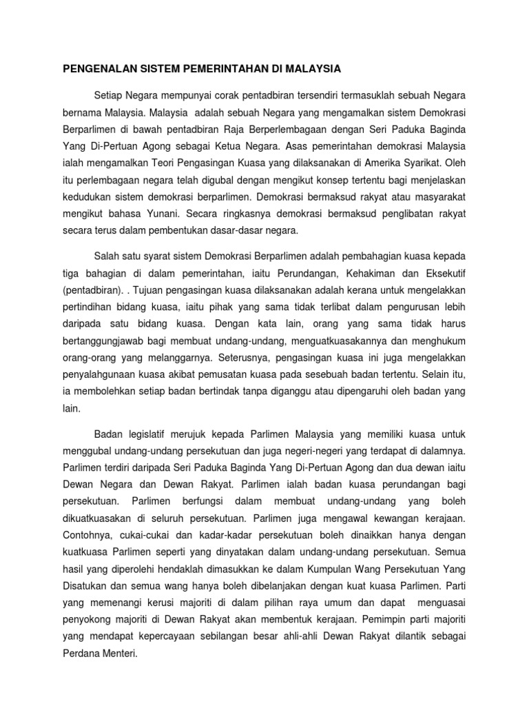 Pengenalan Sistem Pemerintahan Di Malaysia