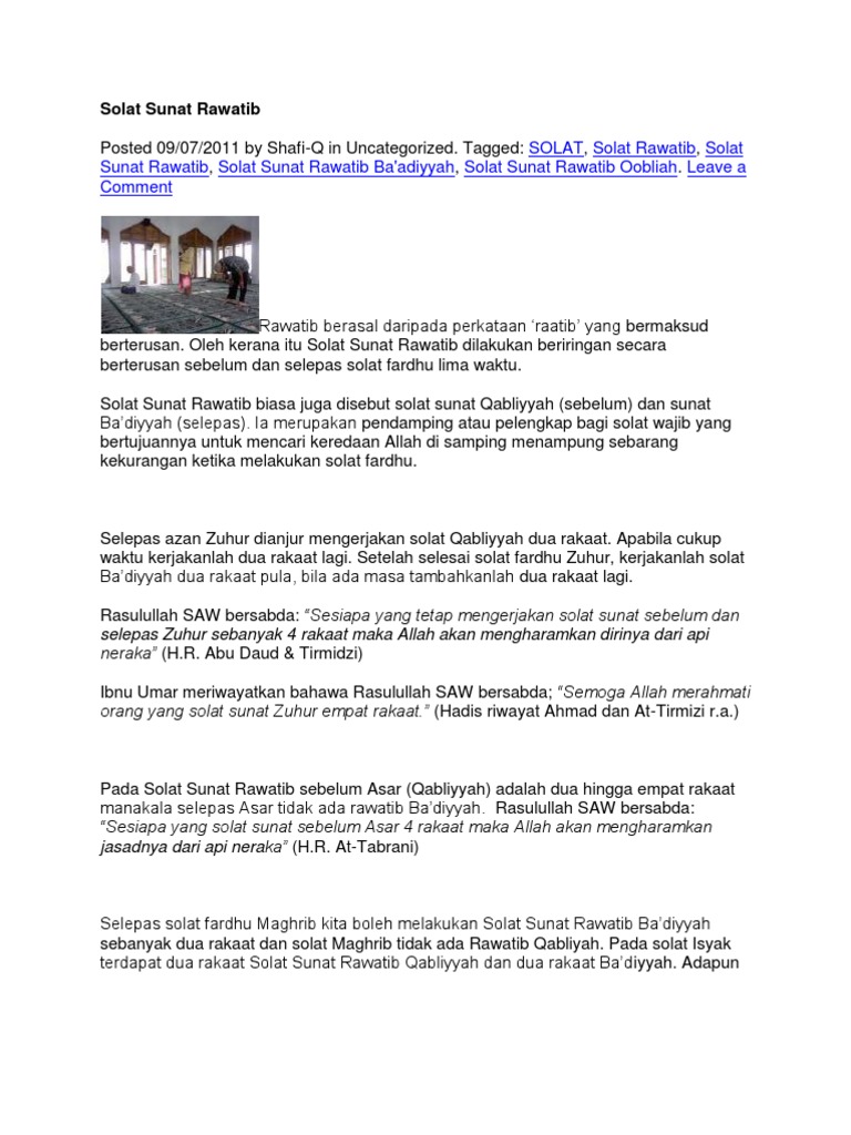 Cerita Islam Solat Sunat Rawatib Biasa Juga Disebut Facebook