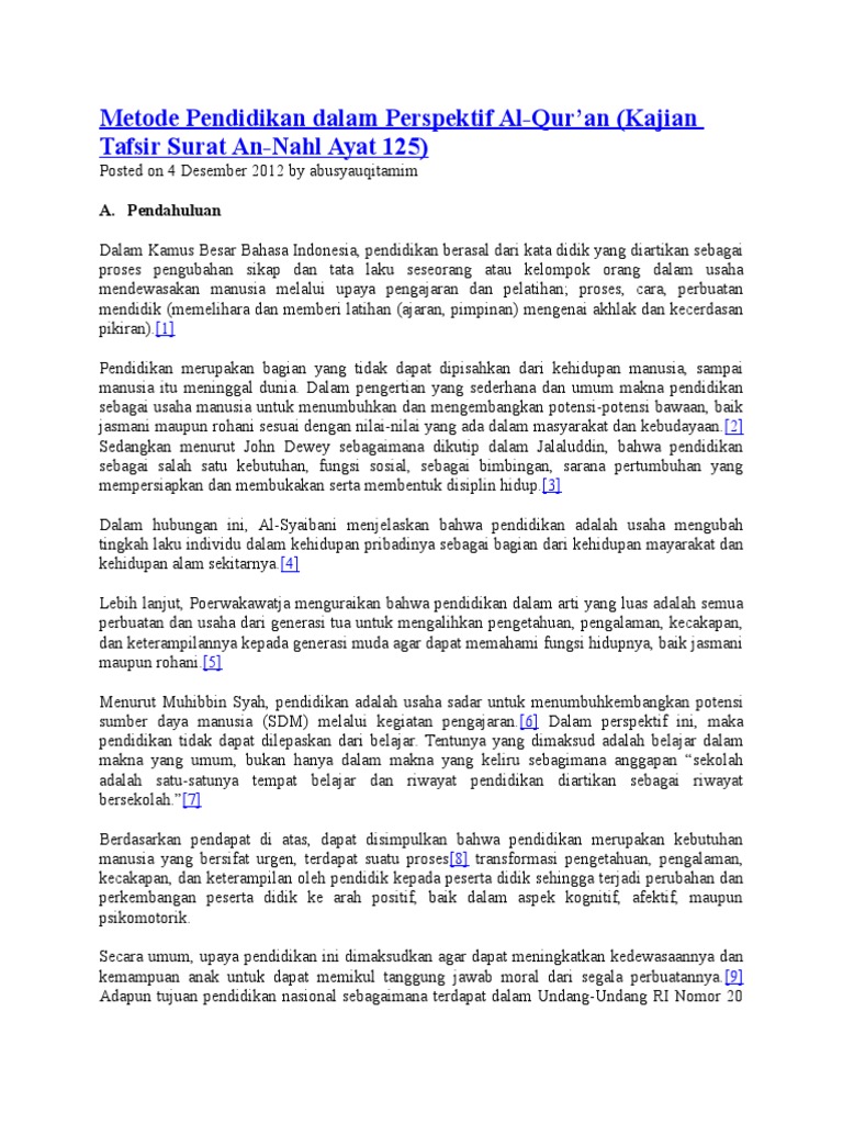 Kajian Surat An Nahl Metode Pendidikan Dalam Perspektif Al