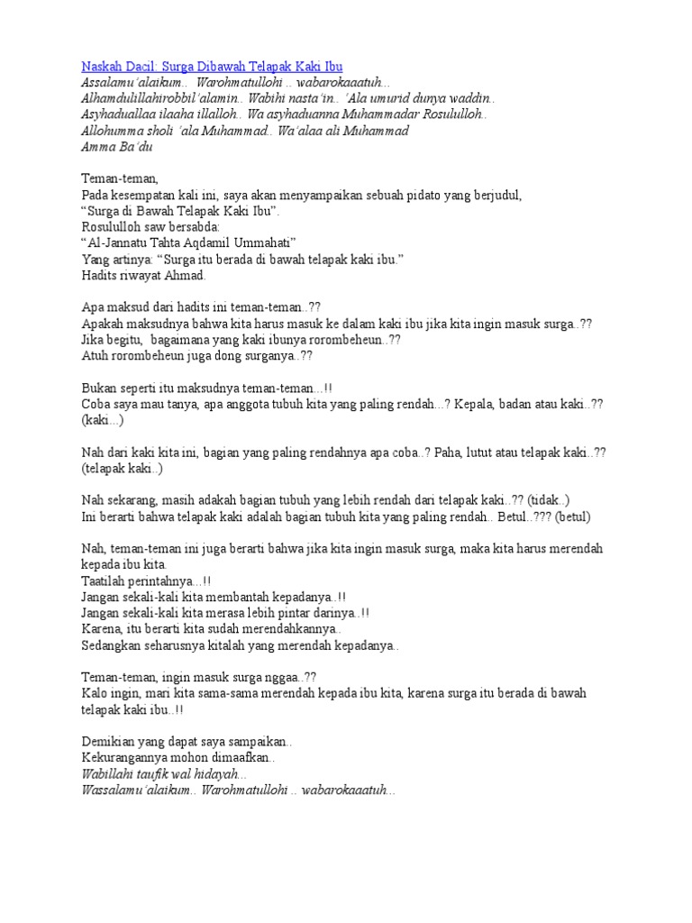 Bahasa Itu Indah Syurga Di Bawah Telapak Kaki Ibu