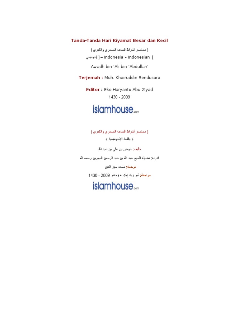 Tanda Tanda Hari Kiyamat Besar Dan Kecil Pdf Download Gratis