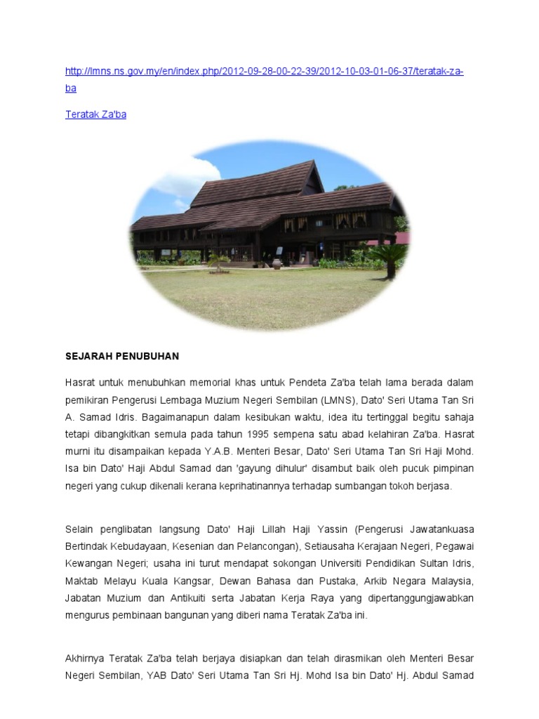 Teratak Zaaba Latar Belakang Zainal Produk Pelancongan Negeri Sembilan Facebook