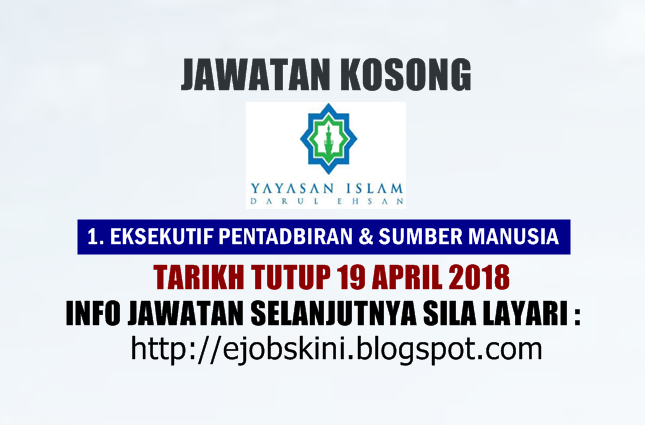 Jawatan Kosong Terkini Di Yayasan Islam Darul Ehsan 22 Mac 2019 Jawatan Kosong 2020 Kerja Kosong Terkini Job Vacancy